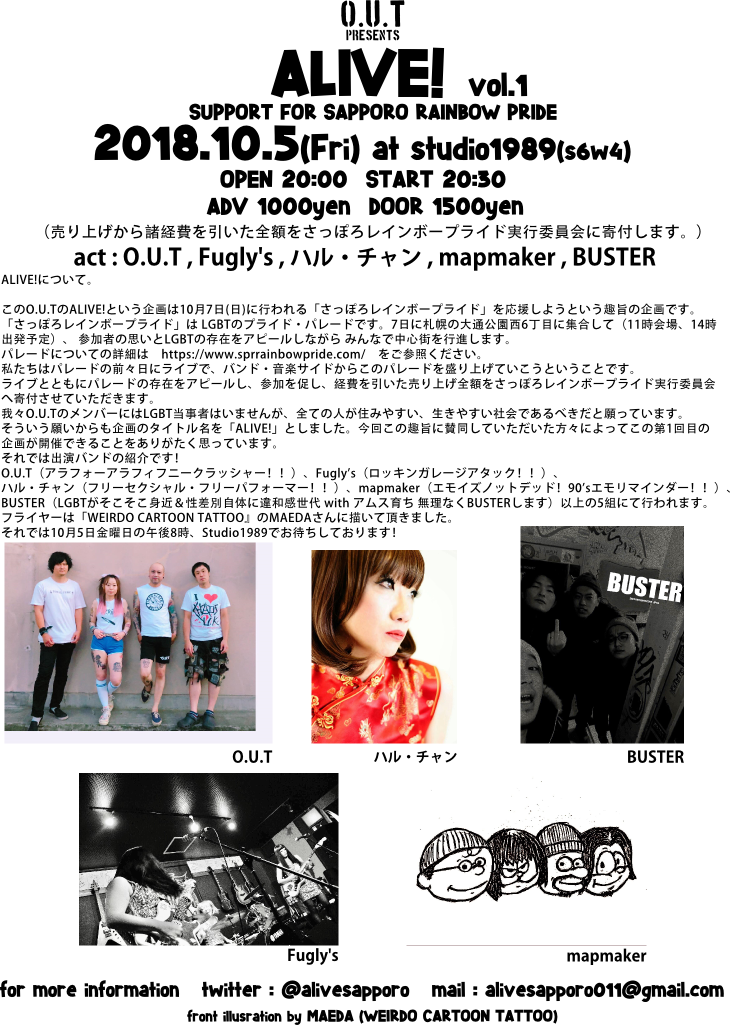 まず、10月5日(金)スタジオ1989で我々の初企画ALIVE!があります。