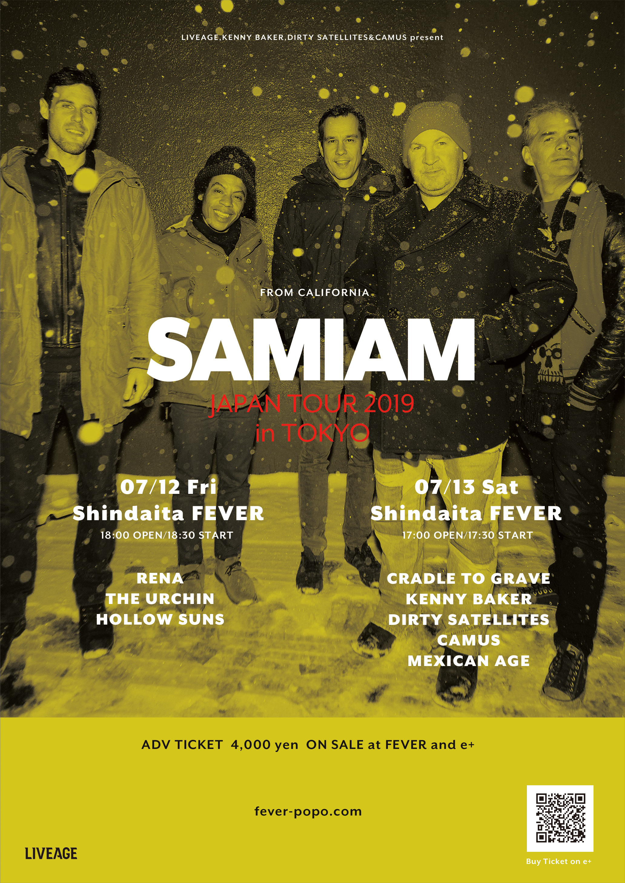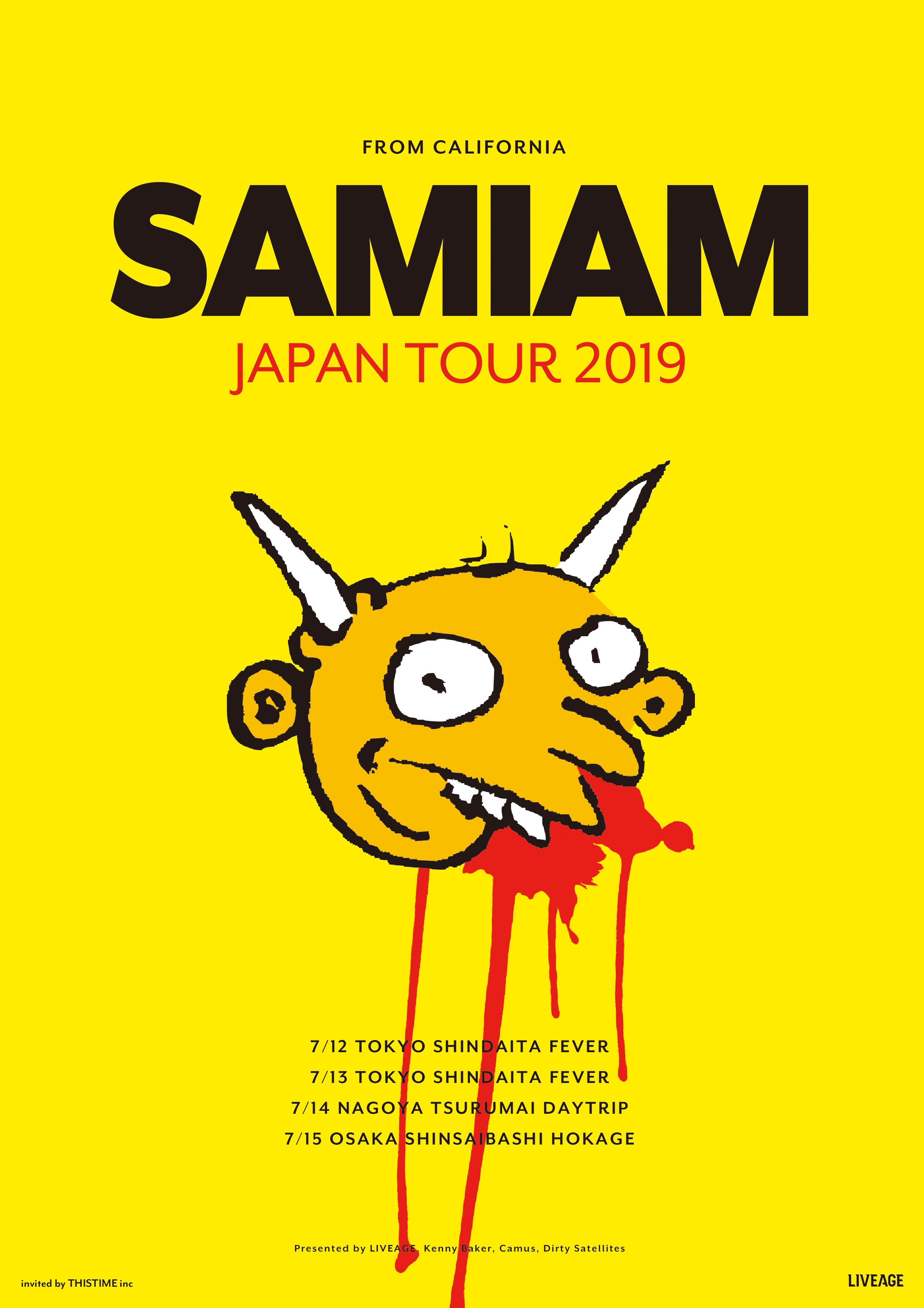 結成30年を超えるUSはカリフォルニアのEMOメロディックの伝説”SAMIAM”が約20年ぶりの来日をします。招聘はLIVEAGEを主体としKENNY BAKER, DIRTY SATELLITES, CAMUSの共同で行います!